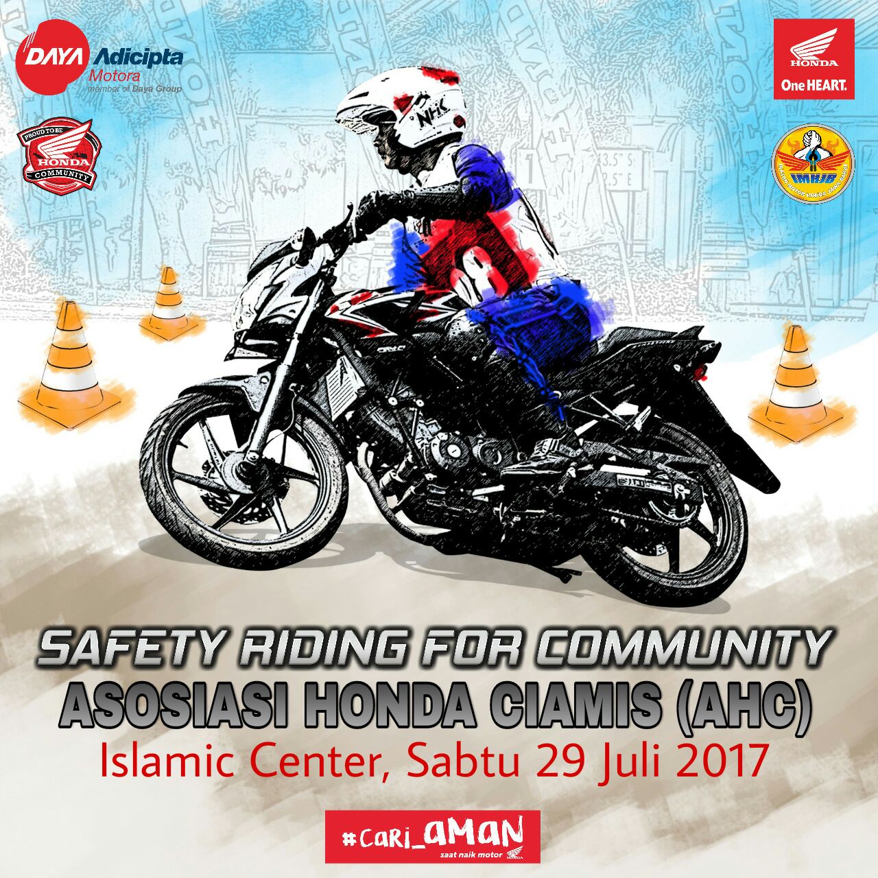 Safety Riding for Community ini ditujukan untuk para anggota Asosiasi Honda Ciamis dan bakal digelar di Islamic Center Jalan Mr. Iwa Kusuma Sumantri, Kertasari, Kec. Ciamis, Kabupaten Ciamis