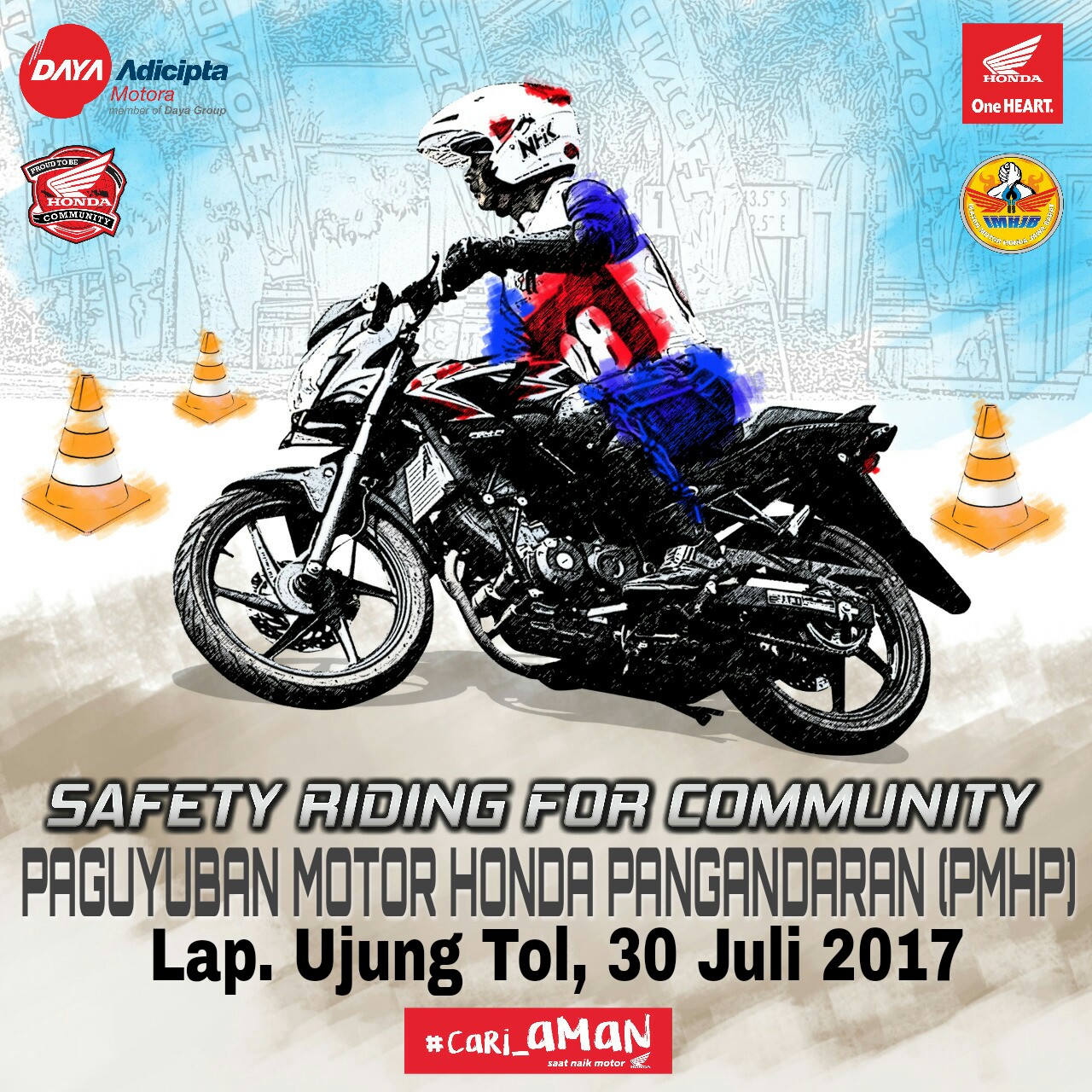 Safety Riding for Community kali ini ditujukan untuk para anggota klub yang tergabung dalam Paguyuban Motor Honda Pangandaran dan bakal digelar di Lapangan Ujung Tol Pangandaran.