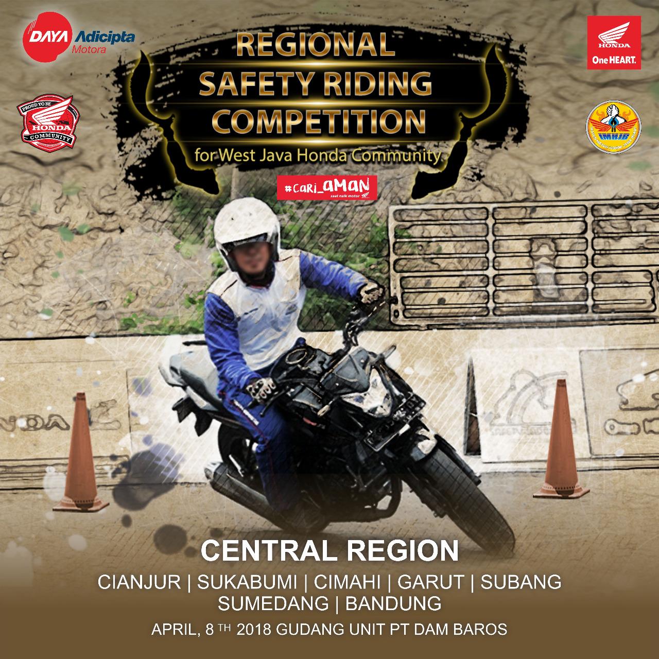 Kawan-kawan... PT. Daya Adicipta Motora sebagai distributor sepada motor dan suku cadang Honda di Jawa Barat untuk mempermudah proses seleksi membagi wilayah Jawa Barat menjadi 3 wilayah yaitu wilayah barat, timur dan tengah. Nah setelah wilayah timur dan barat mengikuti proses seleksi, akhir pekan ini PT. DAM bakal menggelar Kompetisi Safety Riding Wilayah Tengah.