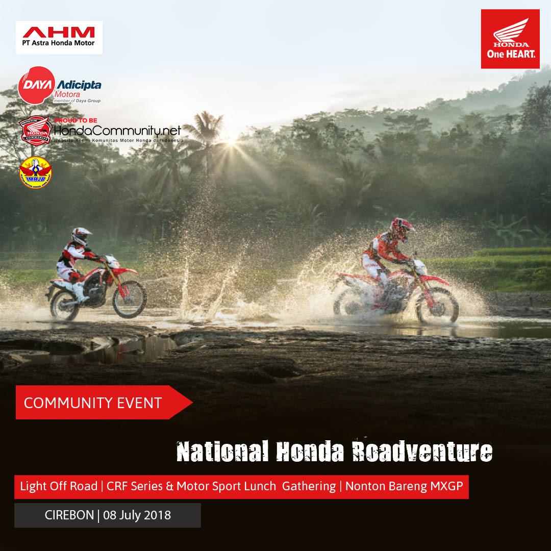 Kawan-kawan.... Para pengguna Honda CRF 150 L di wilayah Cirebon dan sekitarnya dalam rangka memeriahkan gelaran MXGP yang akan diglar akhir pekan ini di Semarang yuk kita ikuti gelaran National Honda Roadventure.
