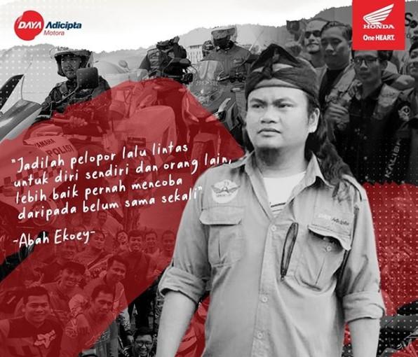 Pesan dari Abah Ekoey untuk para pengguna sepeda motor di seluruh Indonesia, "Jadilah pelopor lalu lintas untuk diri sendiri dan orang lain, lebih baik pernah mencoba daripada belum sama sekali dan selalu #Cari_Aman"