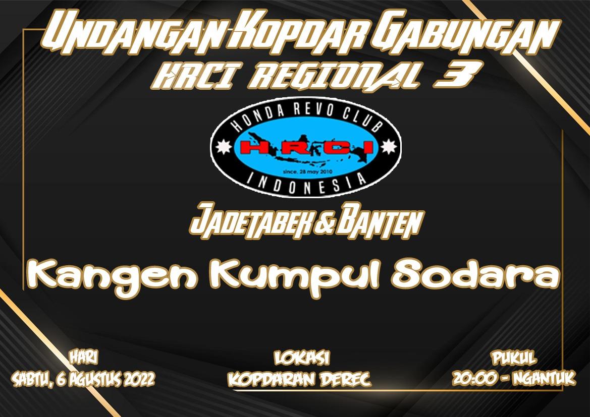 Kawan-kawan.... Akhir pekan ini tepatnya tanggal 6 Agustus 2022 akan digelar kopdargab Honda Revo Club Regional III yang mencakup wilayah Jabodetabek dan Banten.