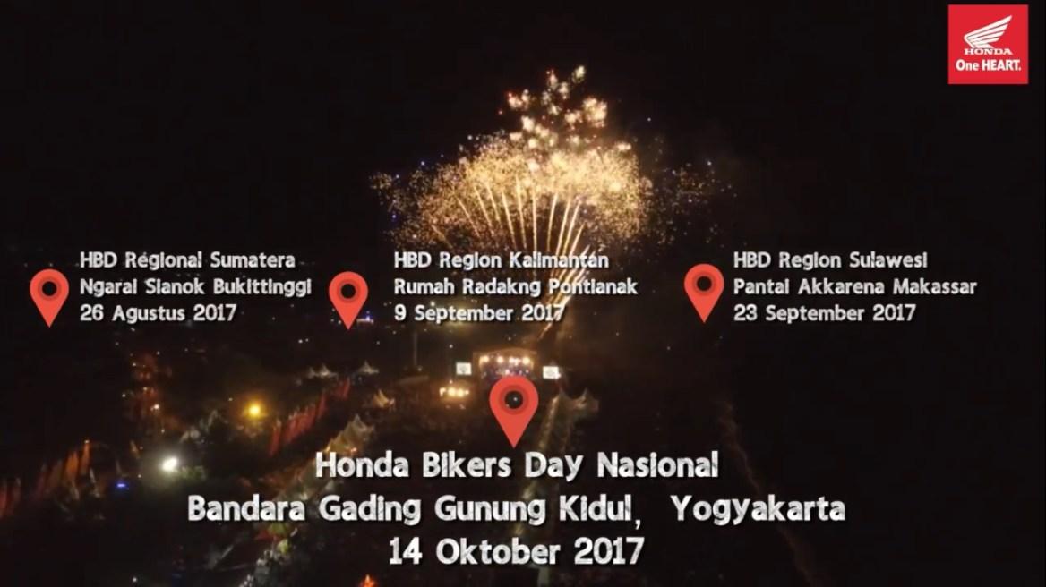Tahun ini, HBD regional 2017 akan menjadi saksi kebersamaan, kekompakan, dan kuatnya persaudaraan sebanyak 2.500 bikers dari 210 komunitas Honda pulau Sumatera, 2.500 bikers dari 108 komunitas Honda pulau Kalimatan, serta 3.000bikers dari 97 komunitas Honda pulau Sulawesi. Rangkaian HBD regional ini merupakan hasil kerja sama AHM dengan jaringan main dealer Honda yaitu PT Hayati Pratama Mandiri – Sumatera Barat, Astra Motor Pontianak – Kalimantan Barat serta Astra Motor Makasar – Sulawesi Selatan, Tenggara dan Ambon selatan dan juga komunitas pecinta sepeda motor Honda di setiap wilayah.