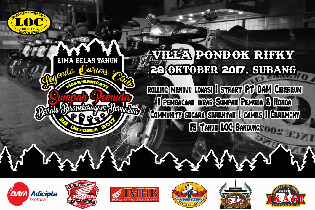 Mengusung Tema Bersatu, Beranekaragam, Bermakna, Acara akan diawali dengan Rolling menuju lokasi acara dengan start dari PT. DAM, Cibeureum Bandung, kemudian ketika sampai di lokasi acara akan dilakukan pembacaan Sumpah Pemuda dan Ikrar Honda Community yang selanjutnya akan dilanjutkan dengan ceremony 15 tahun LOC dan berbagai Hiburan.