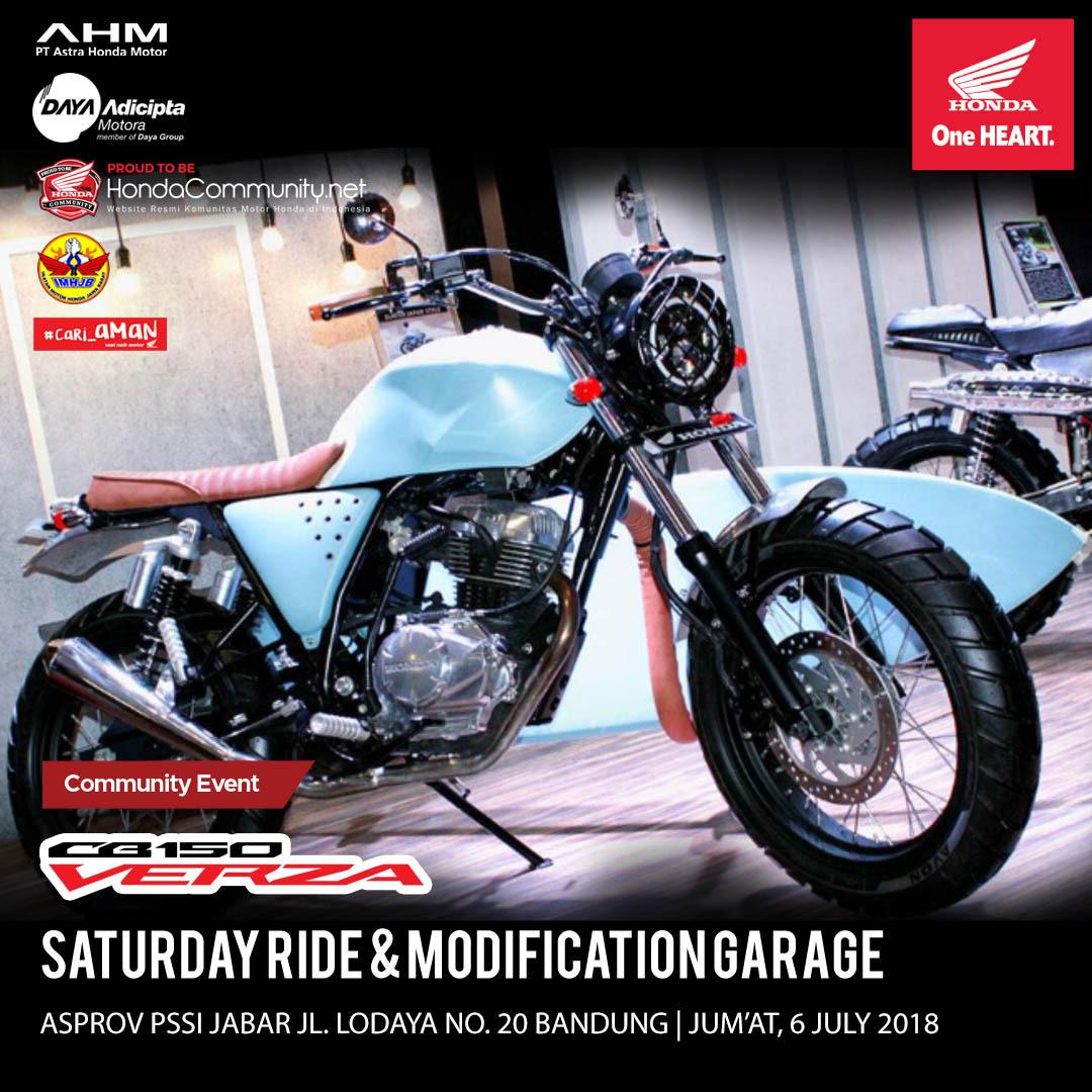 Acaranya adalah Saturday Ride & Modification Gerage yang akan digelar di ASPROV PSSI Jabar, Jl. Lodaya No. 20 Bandung,