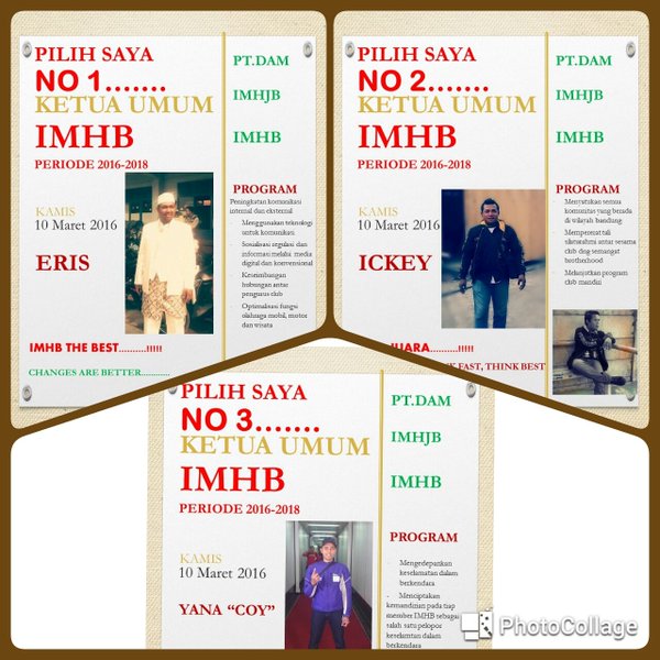 Kawan-kawan.... Hari Minggu Esok (17/7) akan menjadi salah satu hari yang bersejarah bagi Ikatan Motor Honda Bandung, karena di hari esok akan dilakukan kembali pemilihan Ketua Umum untuk dua tahun kedepan.