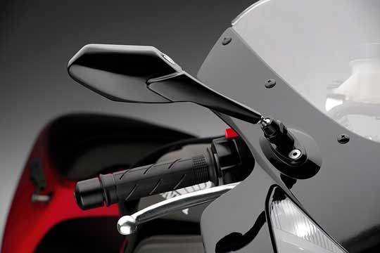 Selain tinggi, spion bawaan pabrik juga didesain lebih keluar dari setang kemudi agar jangkauan pandangan tak terhalang oleh tubuh atau lengan rider itu sendiri. Dengan begitu jangkauan pandang ke badan jalan akan lebih full frame.