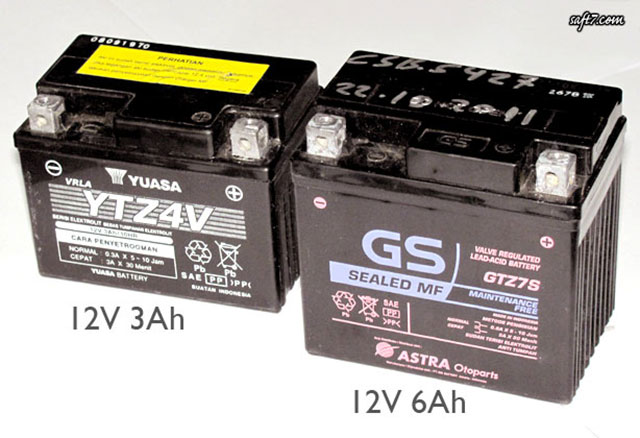 Jika sebelumnya pakai aki kapasitas 5 ampere, maka aki pengganti juga 5 ampere. "Kalau memang ingin pakai ampere lebih tinggi, sebaiknya tak lebih dari 10%-15% dari aki lama," wanti Sarwono Edhi, Technical Training Development PT Astra Honda Motor (AHM).