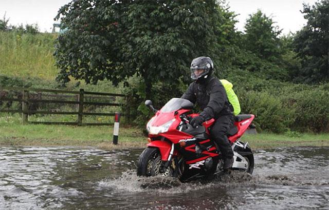 Kurangi kecepatan motor sebanyak 20% saat berkendara di tengah hujan.