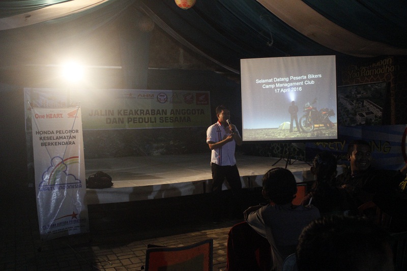 Setelah melakukan kunjungan ke Panti Asuhan Yayasan Kesejahteraan Anak (YKA). Bikers selanjutnya bersiap menuju ke lokasi acara yaitu di Pendopo Citra Raya Mendalo untuk melakukan kegiatan pembahasan Management club dari Bro Dimas yang merupakan salah satu pendiri dari paguyuban IMHJ beberapa tahun silam serta dilanjutkan materi safety riding for community. Safety Riding ini merupakan bentuk kepedulian kami selaku distributor sepeda motor Honda, terkait keselamatan dan etika berkendara para pengguna sepeda motor khususnya pada komunitas Honda.