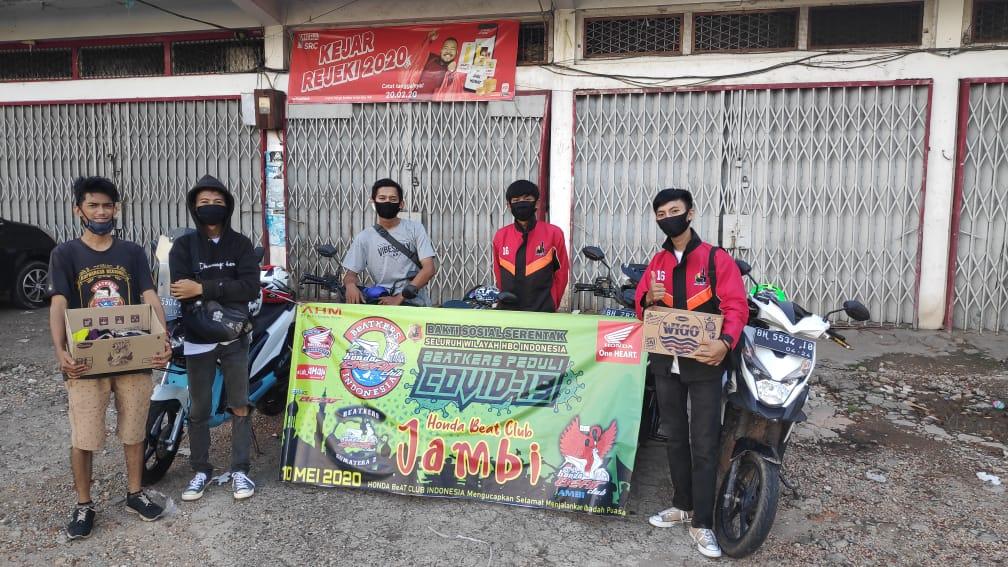 Dengan mengusung tema “Beatkers peduli Covid-19”, Honda Beat Club (HBC) Jambi yang diketuai oleh Valdi juga melakukan kegiatan bakti social. “Pembagian masker dilaksanakan dibeberapa titik di persimpangan lampu merah yang ada di Kota Jambi. Kegiatan ini juga terlaksana mengikuti protokol kesehatan dari pemerintah dengan tidak mengadakan secara berkumpul dan mengatur jarak pembagiannya” ujar Valdi, Ketua HBC Jambi.